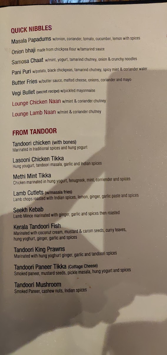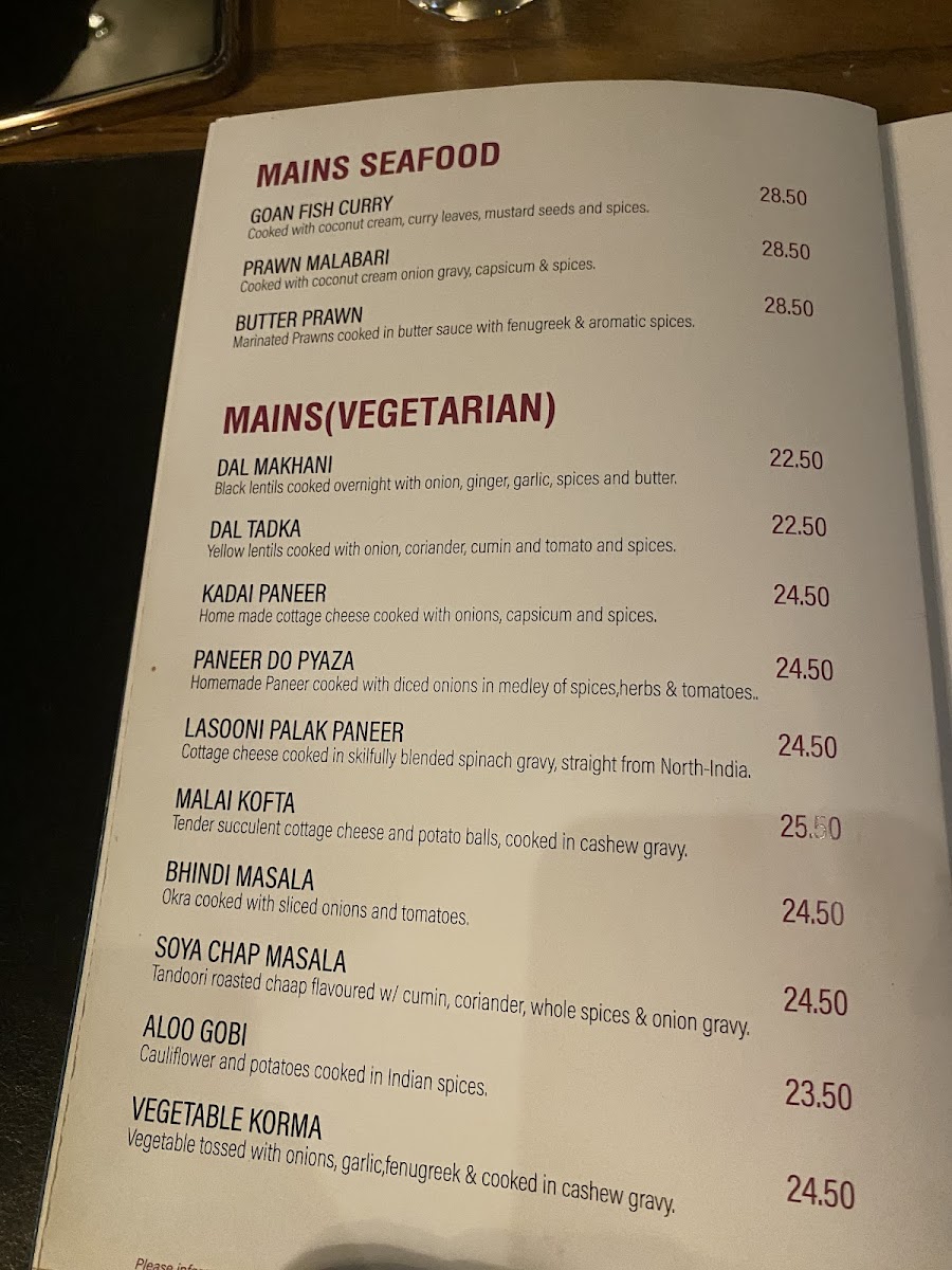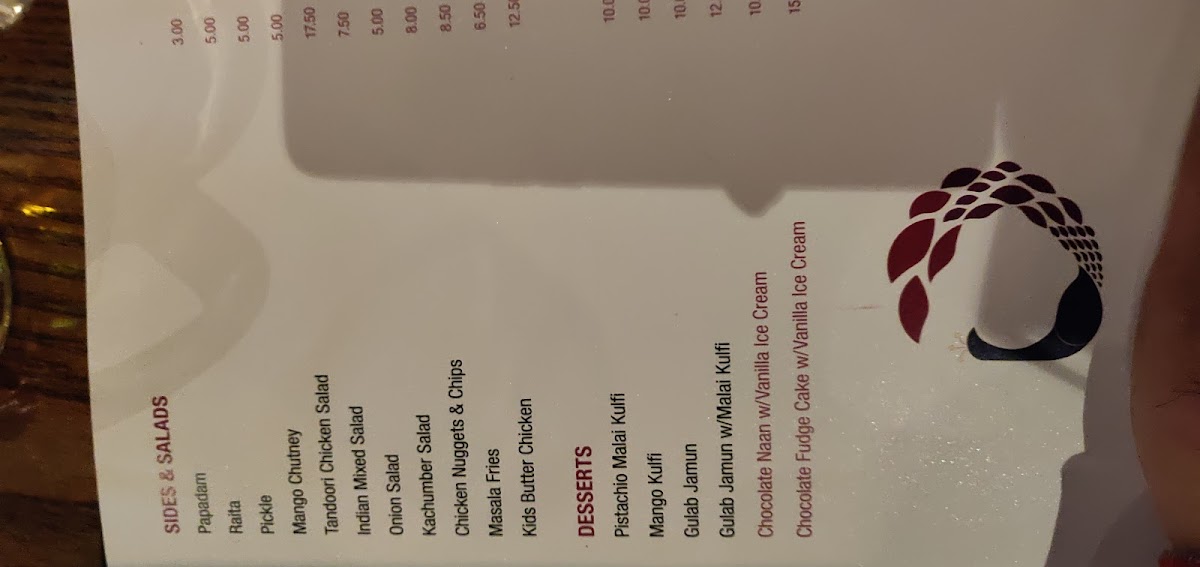 The menu boasts a rich variety of dishes, from indulgent Butter Chicken to tantalizing vegetarian options like Aloo Gobi and Paneer Do Pyaza. For appetizers, try the Samosa Chat or Masala Poppadums for a burst of flavor. Don't forget to complement your meal with their freshly made garlic naan and refreshing mango kalufi for dessert.